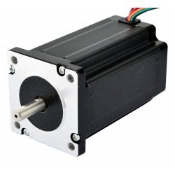 Este es el motor paso a paso nema 24 más potente, con un ángulo de paso de 1,8 grados y un tamaño de 60x60x100 mm. Tiene 8 hilos, los cuales tienen tres opciones de conexión: Unipolar o Bipolar (Serie) o Bipolar (Paralelo), puedes elegir el tipo que desees. Un eje trasero puede montar encoder, volante o equivalentes. Su par de torsión debe alcanzar los 2,8 Nm (397 oz.in) con conexión unipolar y los 4,0 Nm (566 oz.in) con conexión bipolar.